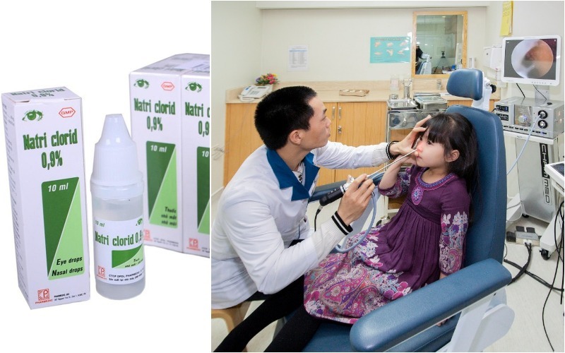 Rửa mũi bằng nước muối sinh lý để vệ sinh mũi.